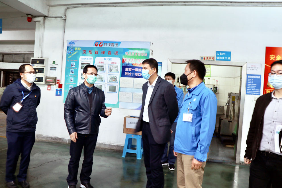 2月13日上午,中山市東區(qū)黨工委書記周俊峰一行深入香山股份檢查督導(dǎo)疫情防控和復(fù)工復(fù)產(chǎn)工作。香山股份董事長趙玉昆、總裁王咸車、監(jiān)事會(huì)主席陳博等陪同檢查。