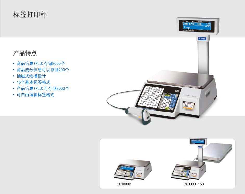 韓國(guó)CAS凱士CL3000-P CL-3000B CL3000-150 電子條碼秤 標(biāo)簽打印秤 桌秤